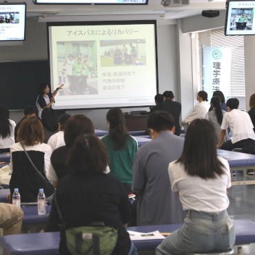 最後に、学部生による座談会が行われました。本学科2年生の濱野碧空さんと後藤ららさんが、スポーツ選手とのボランティア活動を通じて得た経験や、理学療法学科でのキャンパスライフについて語りました。
