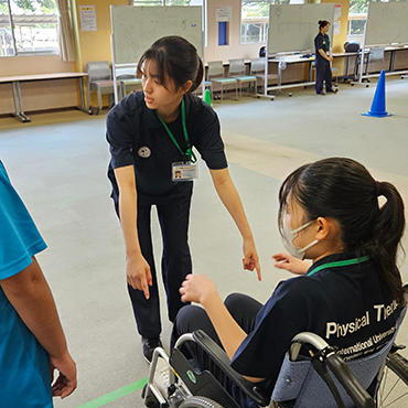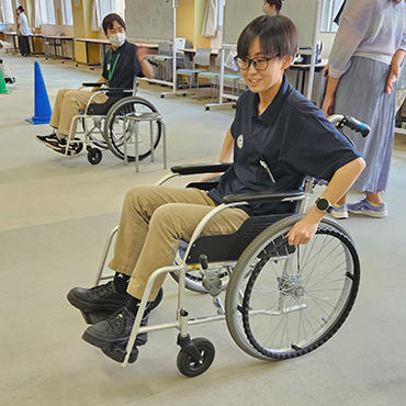 キッズスクールは、「楽しみながら医療福祉の世界を体験しよう」というテーマのもと、医療福祉に関連する体験型イベントや学習プログラムを提供するイベントです。 今回は、理学療法学科のブースでは、小学生を対象に車いす体験を実施しました。参加者は、指定されたコースで車いすを操作し、タイムトライアルに挑戦しました。小学生たちは真剣な表情で操作方法を学び、競技に臨みました。
