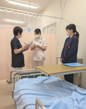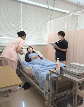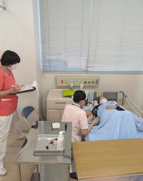 OSCEでは、模擬患者を演じる教員の前で、学生一人ひとりが看護場面を再現。患者の状態を的確に把握し、適切な看護ケアを提供する姿が見られました。教員からは、学生の実践力の向上が確認できたとの評価が寄せられました。