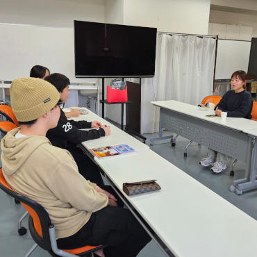 質疑応答の時間には、学生から「動物理学療法士になるまでの道のり」や「具体的な仕事内容」など、活発な質問が寄せられ、先生は丁寧に回答してくださいました。