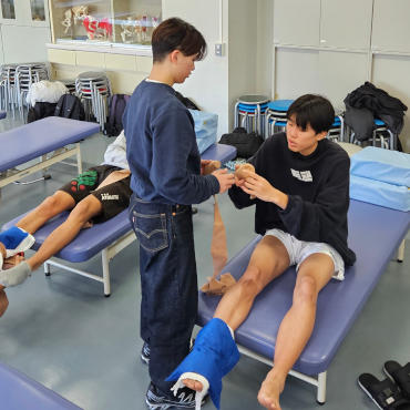 この講義では、物理療法学の基礎知識を習得するとともに、実際に様々な物理療法機器に触れ、その効果を体験する演習を行っています。学生たちは、初めて使用する機器に興味津々で、積極的に実習に取り組んでいました。
