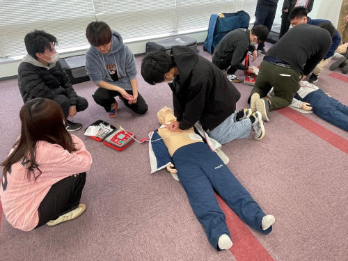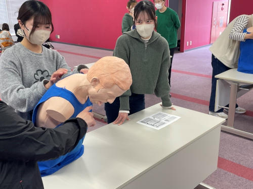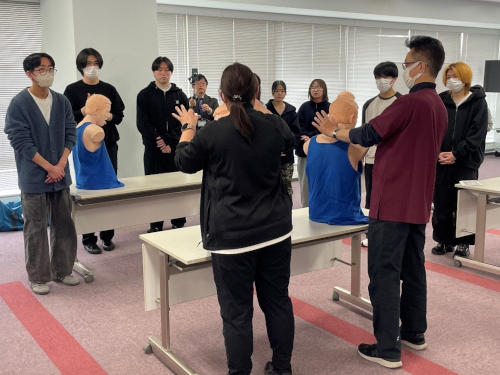 3月31日(月)、医療福祉・マネジメント学科の新3・4年生を対象にBLS(一次救命処置)講習会を行いました!