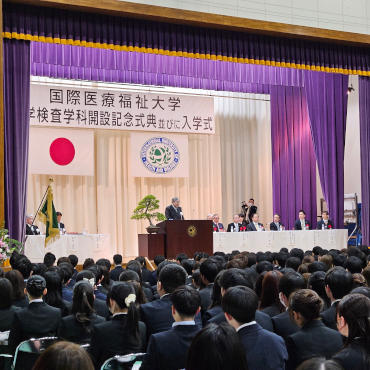4月8日、桜が咲き誇る国際医療福祉大学大田原キャンパスにて、学部生入学式と医学検査学科開設記念式典が挙行されました。本年度は、新たに108名の新入生を理学療法学科に迎えました。