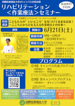 今年は成田キャンパス主催での開催になるため、講師の作業療法士ならびにゲストスピーカーは成田キャンパスからのお話しいただきます。
