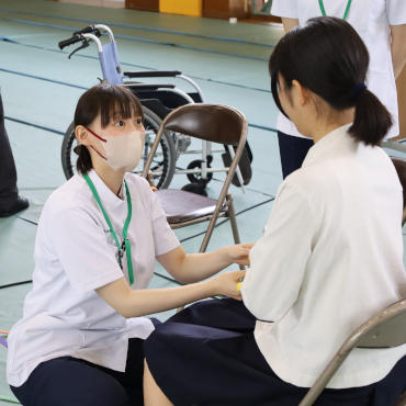 今回のオープンキャンパスでは、リハビリテーション関連の4学科が連携し、リハビリテーションの奥深さを知る企画や、パラスポーツの体験ブースが設けられました。理学療法学科のブースでは、専門的な理学療法評価の一部を体験できるコーナーが人気を集め、参加者は熱心に説明に耳を傾けていました。