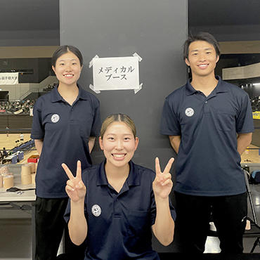 「この貴重な経験を通して、テーピングの技術はもちろん、選手や保護者の方への対応についても深く学ぶことができました。また、脳震盪や骨折が疑われるケースなど、さまざまな症状への対応も経験でき、将来の理学療法士としてのスキルアップにつながる貴重な機会となりました。」