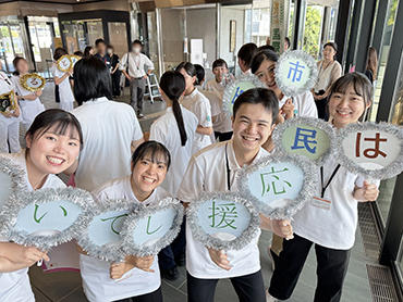 9月22日(月)、2026年度前期、連続テレビ小説「風、薫る」(NHK)で主演を務める見上愛さんが大田原市役所へ訪問されました。 本学の学生と教職員も歓迎の場に立ち会わせていただき、 実際にお目にかかった学生たちは、興奮している様子。 その際、記念に撮影させていただきました。