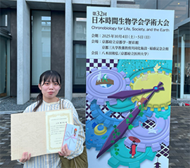 第32回日本時間生物学会学術大会で薬学部・年齢軸生命機能解析学分野 土井穂乃香さんが優秀演題賞
