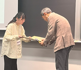 第32回 日本時間生物学会学術大会 (10月3日International Symposium 4,5日 学術大会) が京都府立京都学・歴彩館 (京都三大学教養教育共同化施設・稲盛記念会館) で開催され、薬学部 年齢軸生命機能解析学分野 5年生 土井穂乃香さんが優秀演題賞を受賞しました。