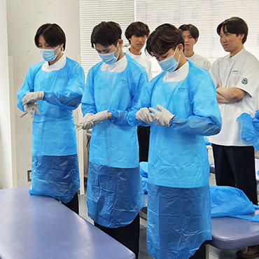大田原キャンパスでは、このような実践的な演習を通して、学生が臨床現場で求められる感染予防対策を確実に習得し、安全な医療を提供できる理学療法士の育成に尽力してまいります。