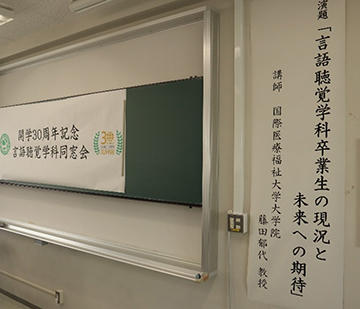 同窓会では、本学科3代目学科長で現在国際医療福祉大学大学院の教員である藤田郁代教授から「言語聴覚学科卒業生の現状と未来への期待」というテーマでご講演いただきました。