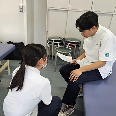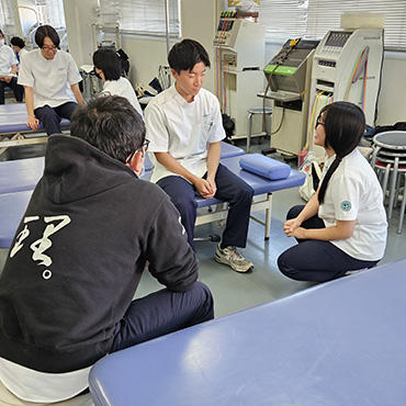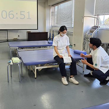 今年度から理学療法士協会が作成したOSCE課題を導入しました。これにより、協会の統一評価基準に基づき、公正かつ正確な全国レベルの学生評価が実現します。新しい課題に対応するため、「PTスキルⅣ」の講義で集中的に指導を行い、規定時間内での実施や教員からの個別フィードバックなどを重ねてきました。