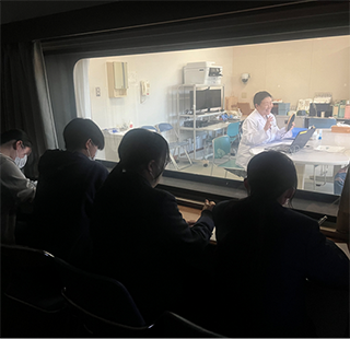 11月22日に初の試みとして、実際に言語聴覚士が行っているリハビリテーションの様子を見学できる「言語聴覚センター臨床見学会」を開催しました。対象は高校1,2年生で、臨床を行っている部屋とマジックミラーを挟んで隣にある観察室から言語聴覚学科の学生さんと一緒に臨床場面を見学しました。この観察室は言語聴覚学科の学生が臨床実習で使用しています。今回は聴覚障害と小児の構音障害(発音の障害)の臨床見学を行いました。その間、親御さんは温かいお茶をいただきながら、少し離れたカンファレンスルームで、スクリーンに映し出されてた映像を通し、高校生と同様の場面を見学していただきました。見学後には、言語聴覚士である教員から見学場面の解説を行いました。参加された高校生の皆さんは、とても熱心に見学され、見学後にはたくさんの質問をいただきました。どの質問も目の付けどころが素晴らしく、同行した学生と教員から「お~!」と感嘆の声が漏れていました。最後に言語聴覚センターのフロア内をじっくり見学いただきました。