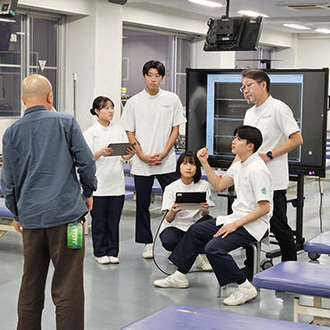 来年度の入学者向け理学療法学科パンフレットの撮影を実施しました。最新のICT(情報通信技術)機器を活用した教育環境と、教員と学生の距離の近さを象徴する「信頼関係」をテーマに、活気あふれる教育現場の今を切り取りました。